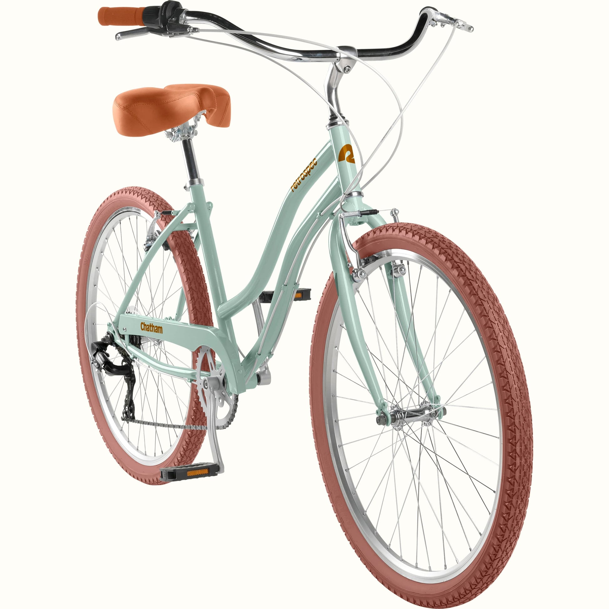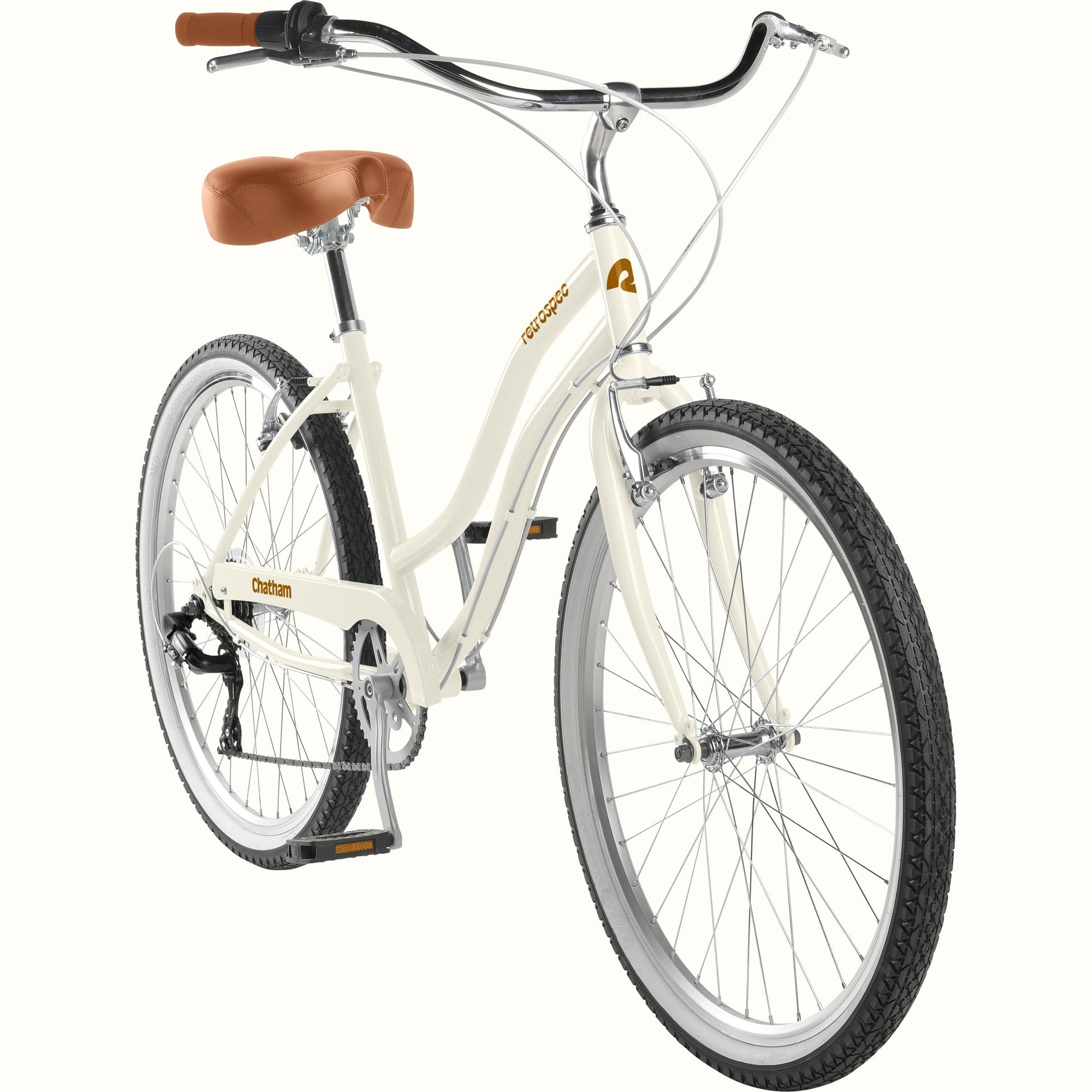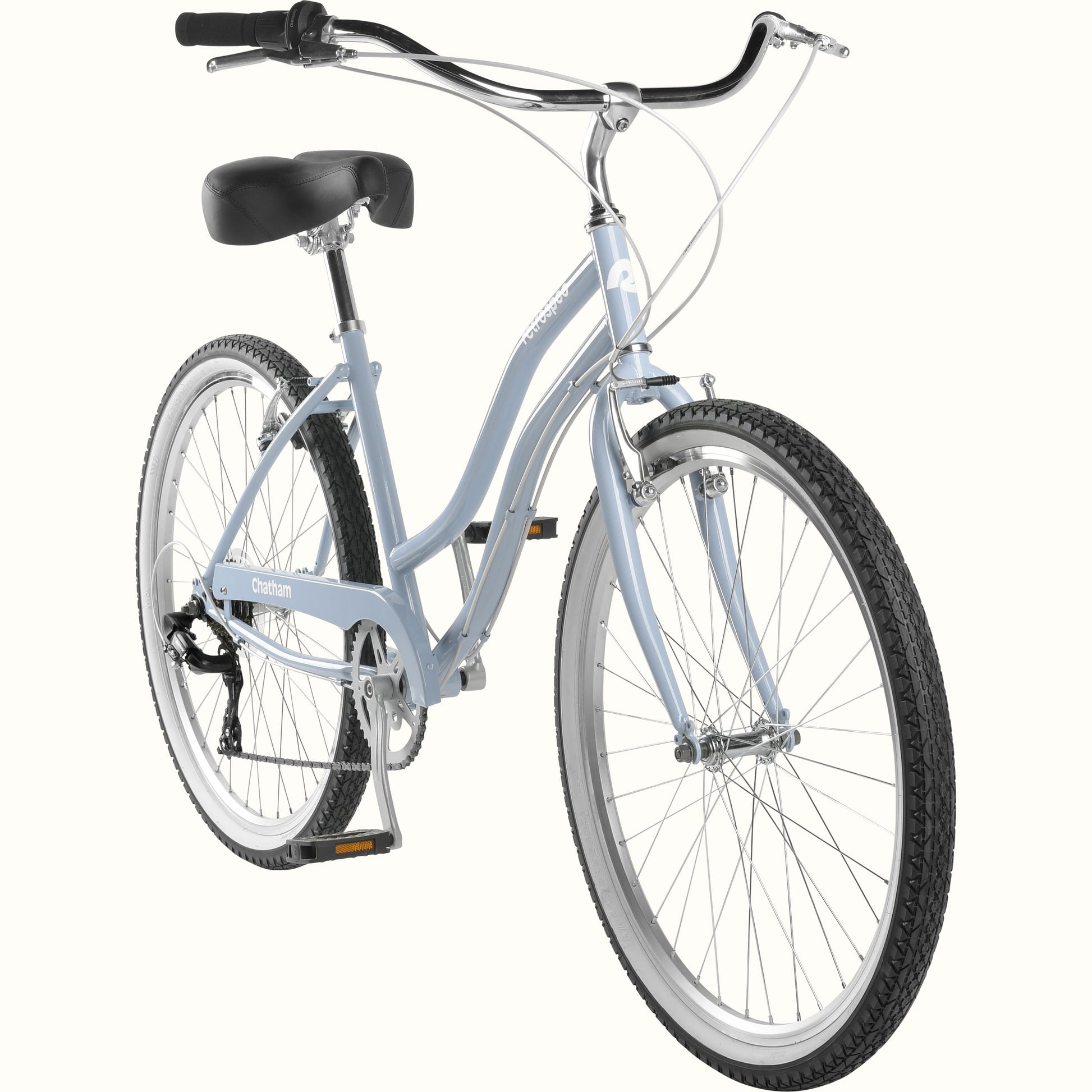 - Frame Chatham Classic Step-thru, hand-built high-tensile steel, 16" center-to-top, with steel chainguard, double rear dropout eyelets, and rear rack braze-ons