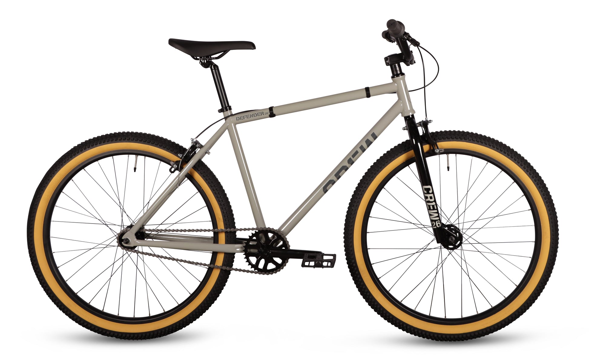 Introducing the new Crew Bike Co. Defender 26" – a fixed gear/single-speed machine built for riders who demand versatility, control, and style to match. With its 26-inch wheels, the Defender strikes the perfect balance between nimble handling and solid stability, making it ideal for all-around riding, whether you’re cruising city streets, hitting tricks, or taking on your daily commute.